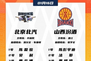 体育资讯1月16日讯 今晚19:35,北京主场迎战山西,赛前大名单出炉。