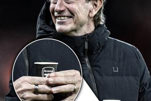 体育资讯01月08日讯 本轮英超比赛热刺客场2-3不敌伯恩茅斯,赛前热刺主帅弗兰克被拍到手持印有阿森纳logo的小杯子。4天之前,伯恩茅斯刚刚在这块场地迎战过阿森纳。