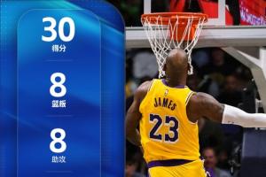 他全场比赛出战33分钟,19投10中,三分球5中3,7罚全中拿下30分8板8助2断1帽的数据,正负值+10。